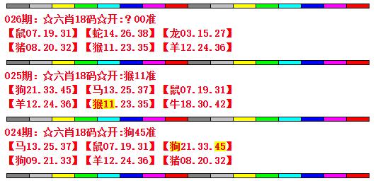 | 026期 | 鼠 | 1尾 | 绿波 | 3头 | ?00 |